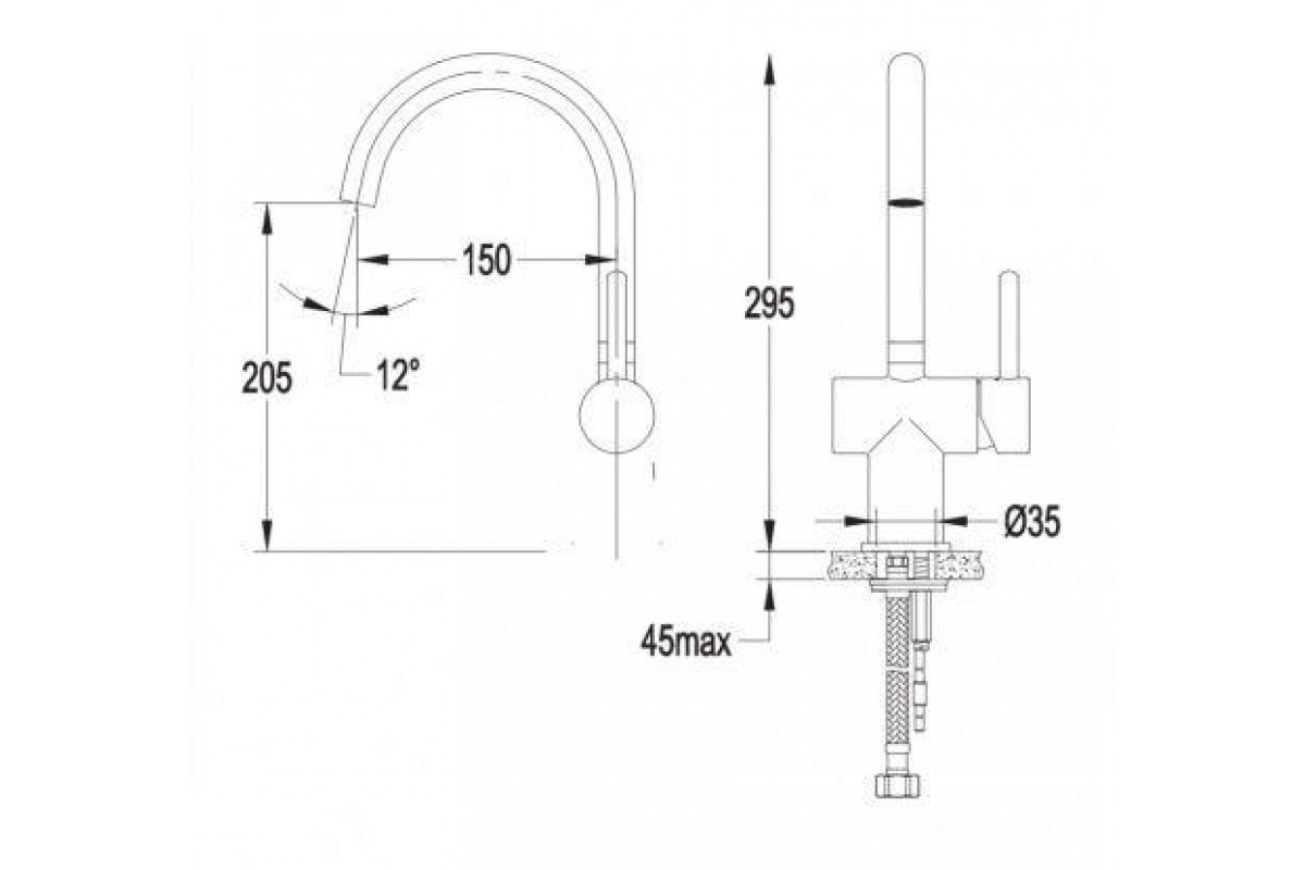 - высота до излива 225 мм; - корпус смесителя: латунь; - рукоятка смесителя: латунь; - корпус излива: латунь; - керамический картридж: Sedal; - скрытый аэратор: Neoperl; - пропускная способность: 12 л/мин при давлении 3 Бар; - встраиваемая часть в комплекте. Технология нанесения покрытия: гальваника