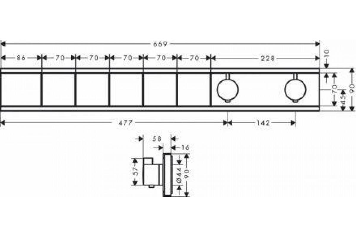 Внешняя часть термостата для душа hansgrohe RainSelect скрытого монтажа на 5 потребителей 15384700, матовый белый
