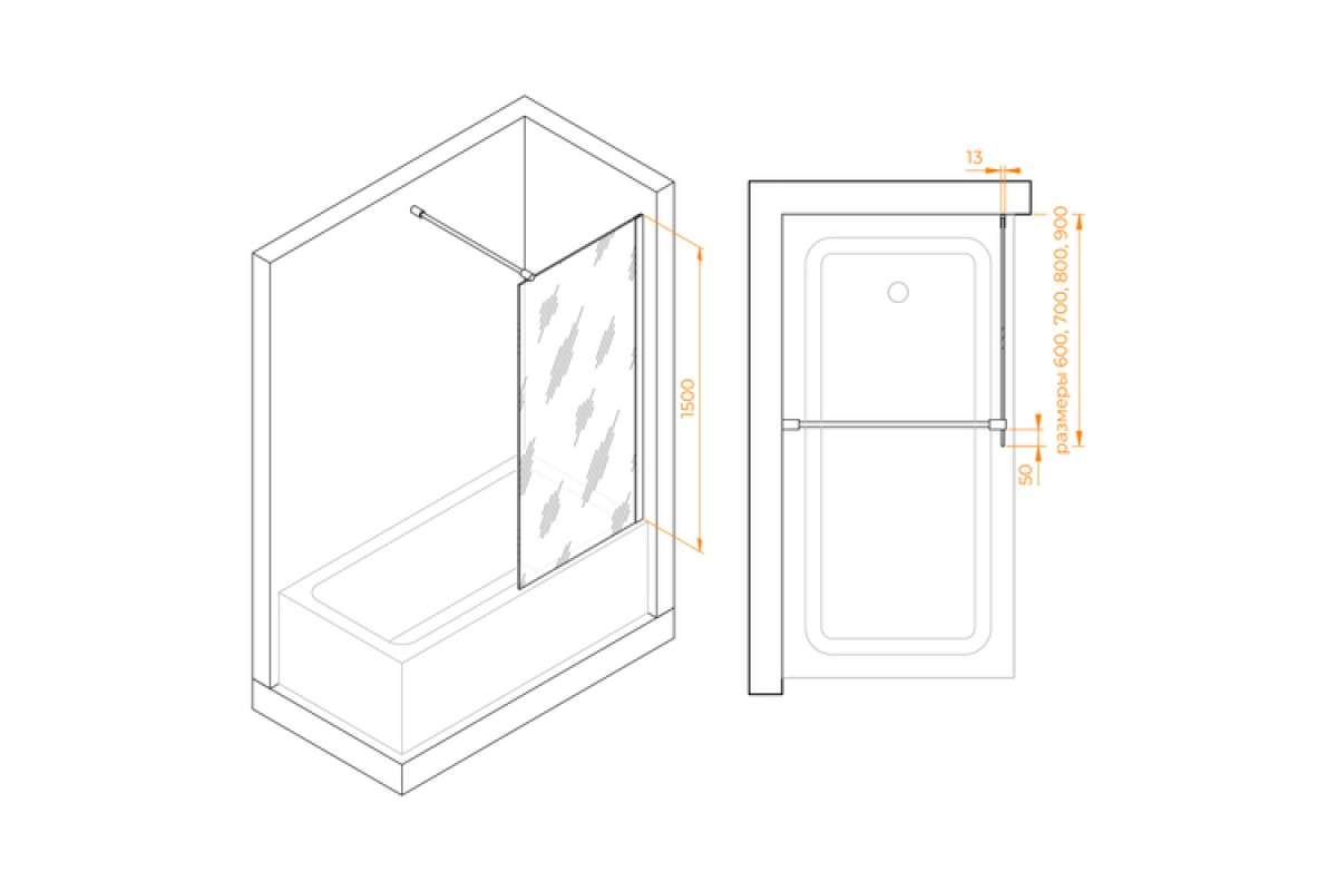 Стационарная шторка для ванны RGW Screens SC-051 60х150 тонированное стекло (Серое) 6мм 351105106-31