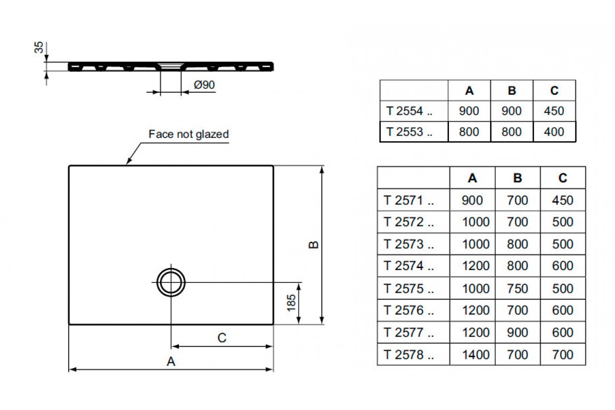 Керамический прямоугольный душевой поддон 120X90 см Ideal Standard STRADA T2577YK