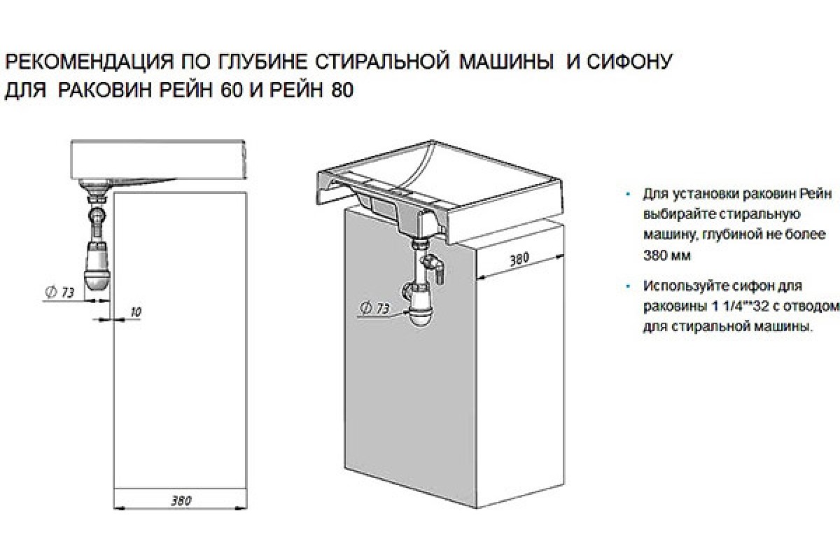 AQUATON 1A72103KRW010 Раковина Рейн 600 бел. на стиральную машину