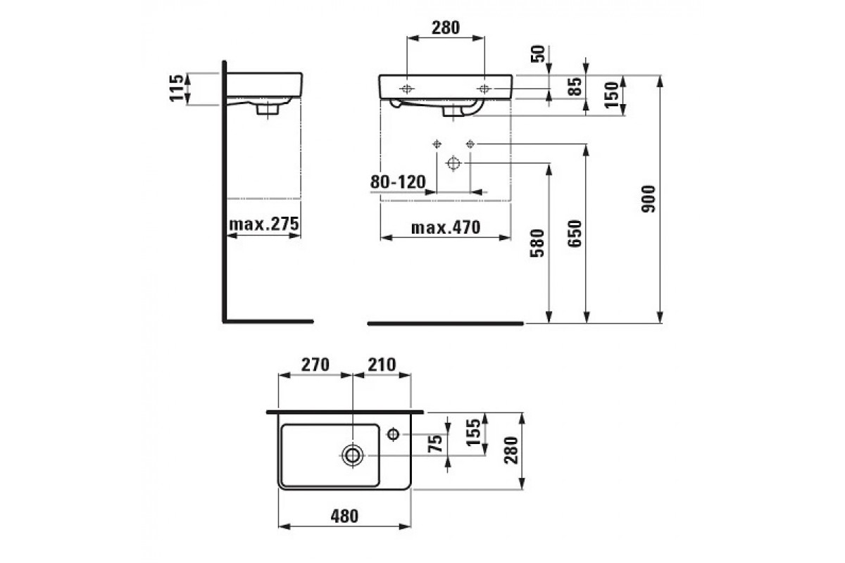 LAUFEN PRO S 1595.4.000.104.1 раковина 48х28, правая