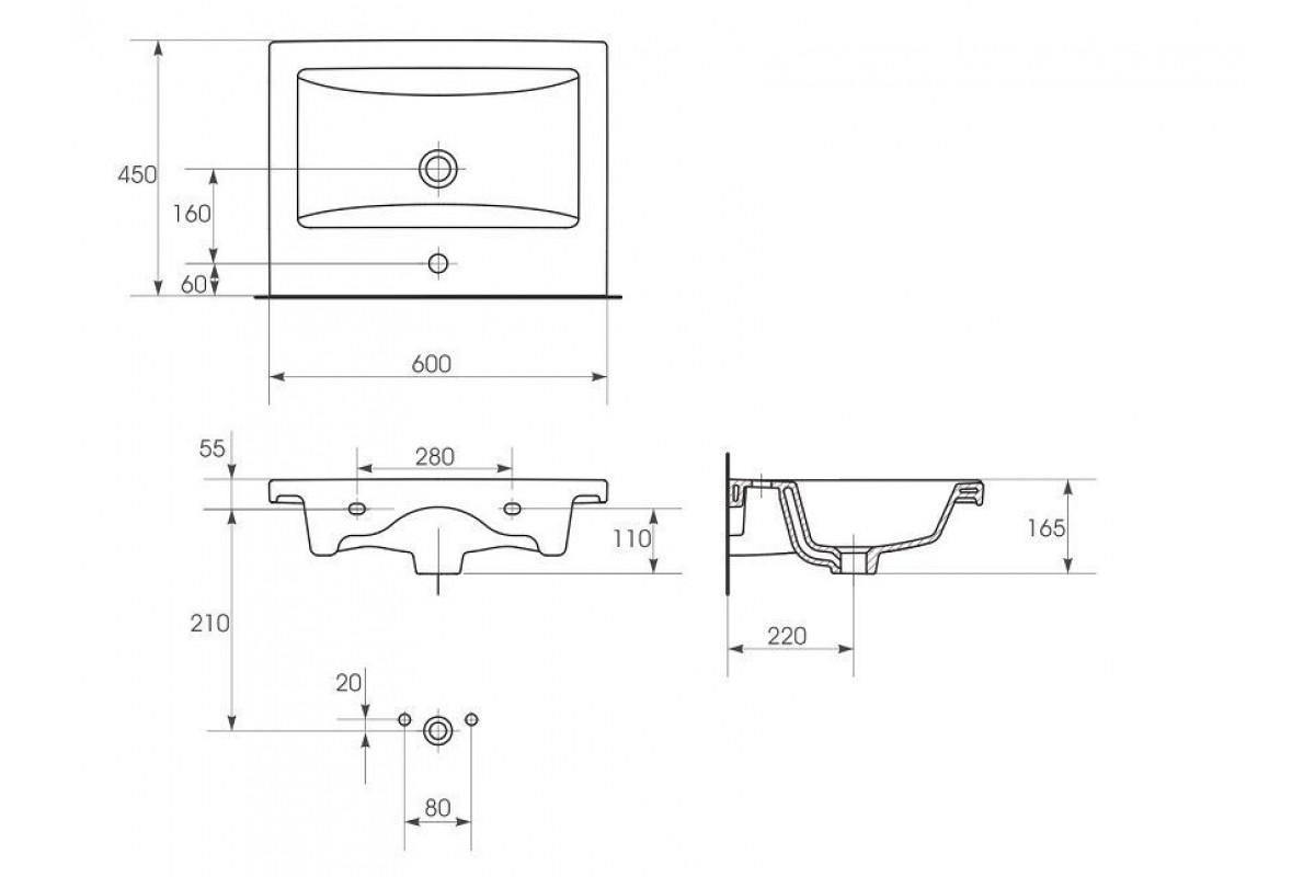 Умывальник мебельный/подвесной с креплением COMO 60*45 см, РФ, S-UM-COM60/1-w