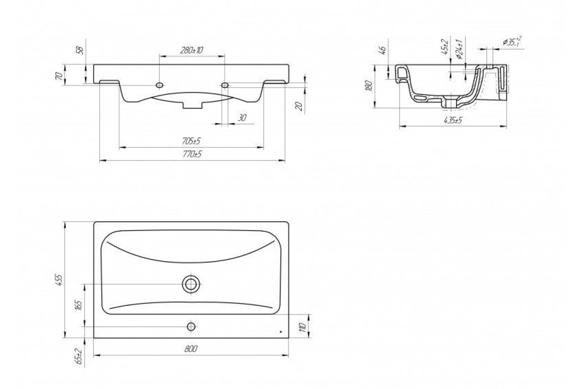 Умывальник мебельный/подвесной с креплением MODUO 80*45,5 см, РФ, S-UM-MOD80/1