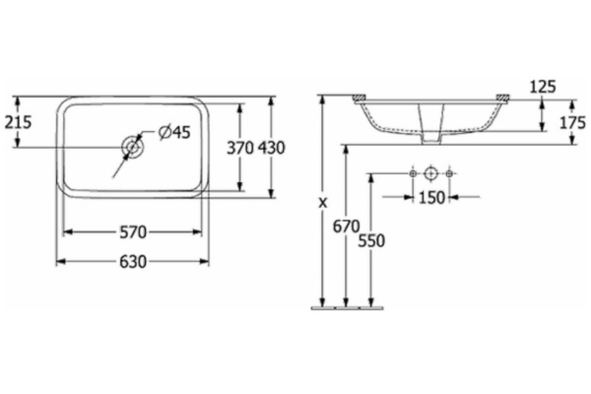 Умывальник врезной Villeroy&Boсh Architectura 57x37 5A776101, белый