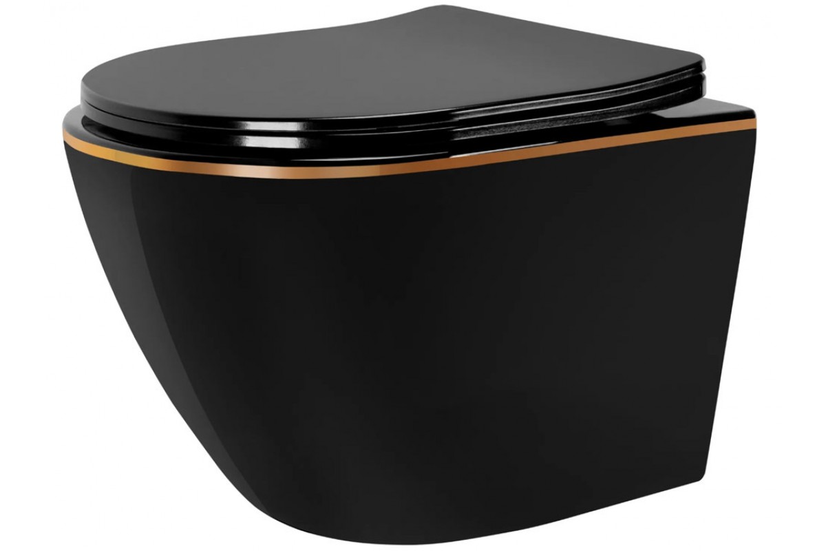 Унитаз подвесной Rea Carlo Mini rimless Flat Black Gold Edge C8800