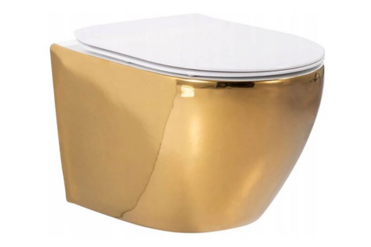 Унитаз подвесной Rea Carlo Mini Rimless Gold White C0669