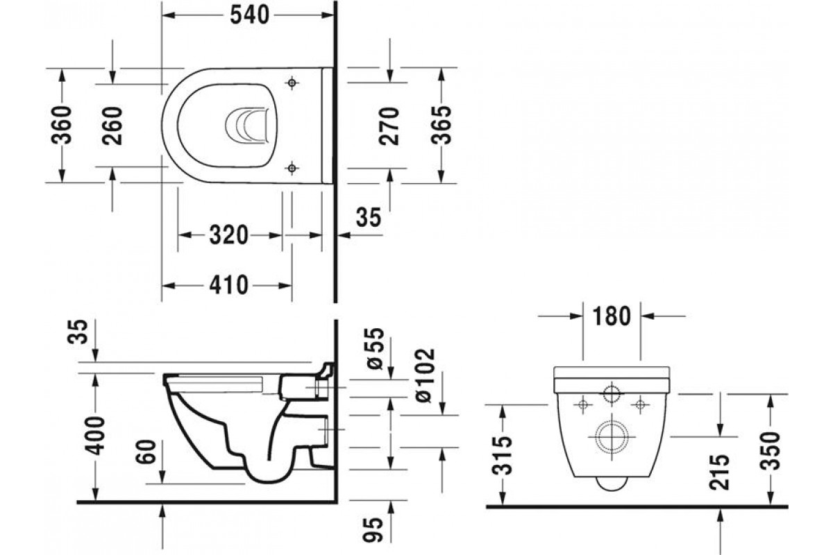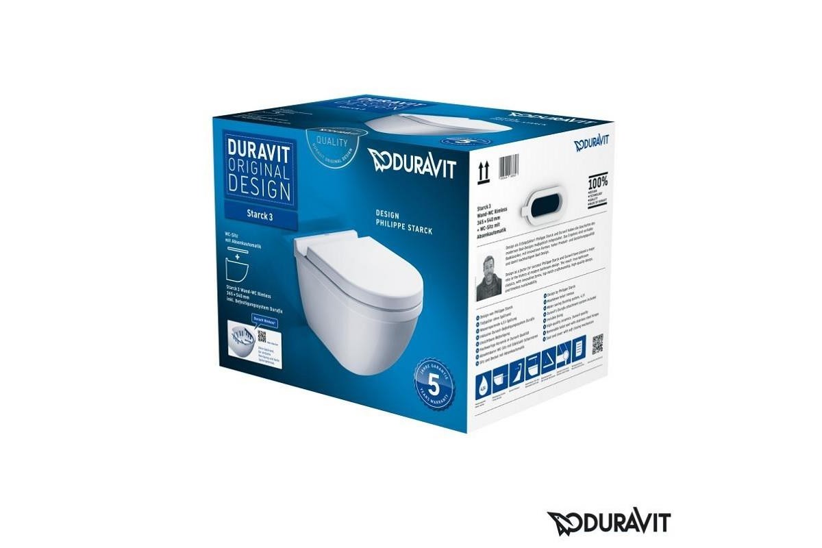 Подвесной унитаз Duravit Rimless Starck 3 45270900A1 STARСК 3 комбипак (2527090000 Унитаз 360х540, подвесной, Rimless® + 0063890000 Сиденье с крышкой, SoftClose)