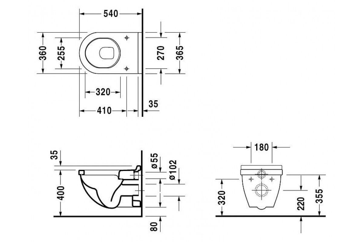 Подвесной унитаз Duravit Starck 3, 2200090000, белый 360х540