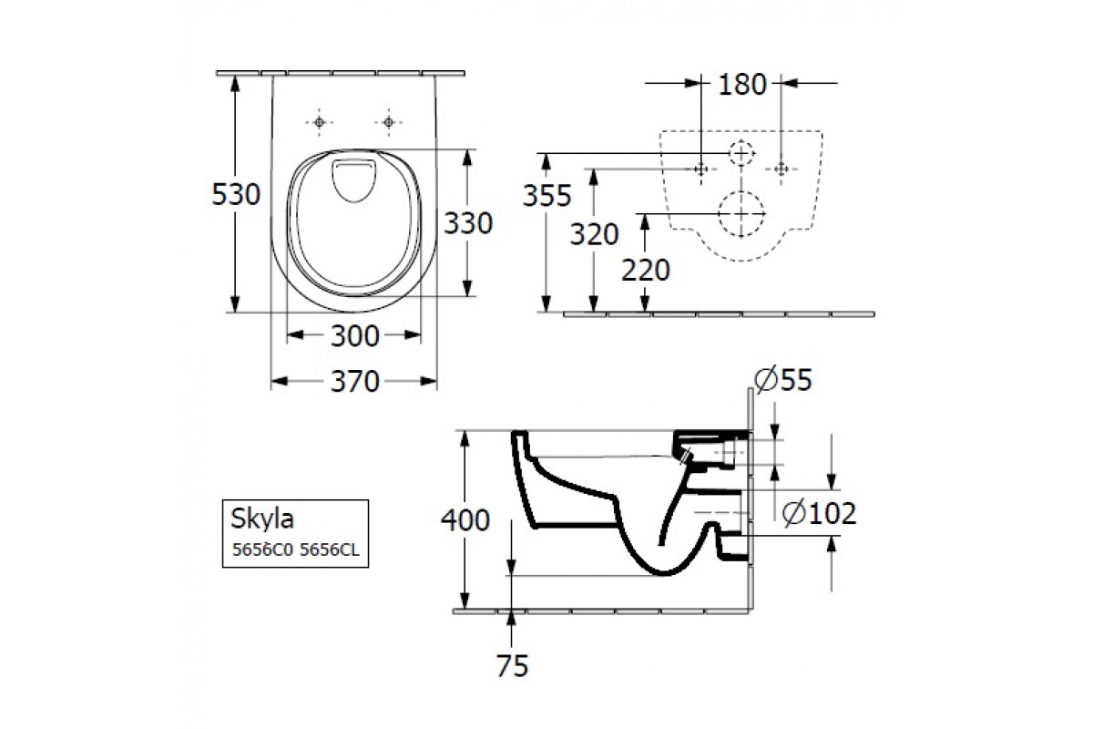Подвесной унитаз Villeroy & Boch Skyla 5656CL01, смыв DirectFlush (торнадо), сиденье микролифт, альпийский белый