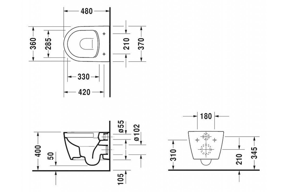 Унитаз подвесной Duravit ME by Starck 2530090000 370х480, подвесной, Rimless®