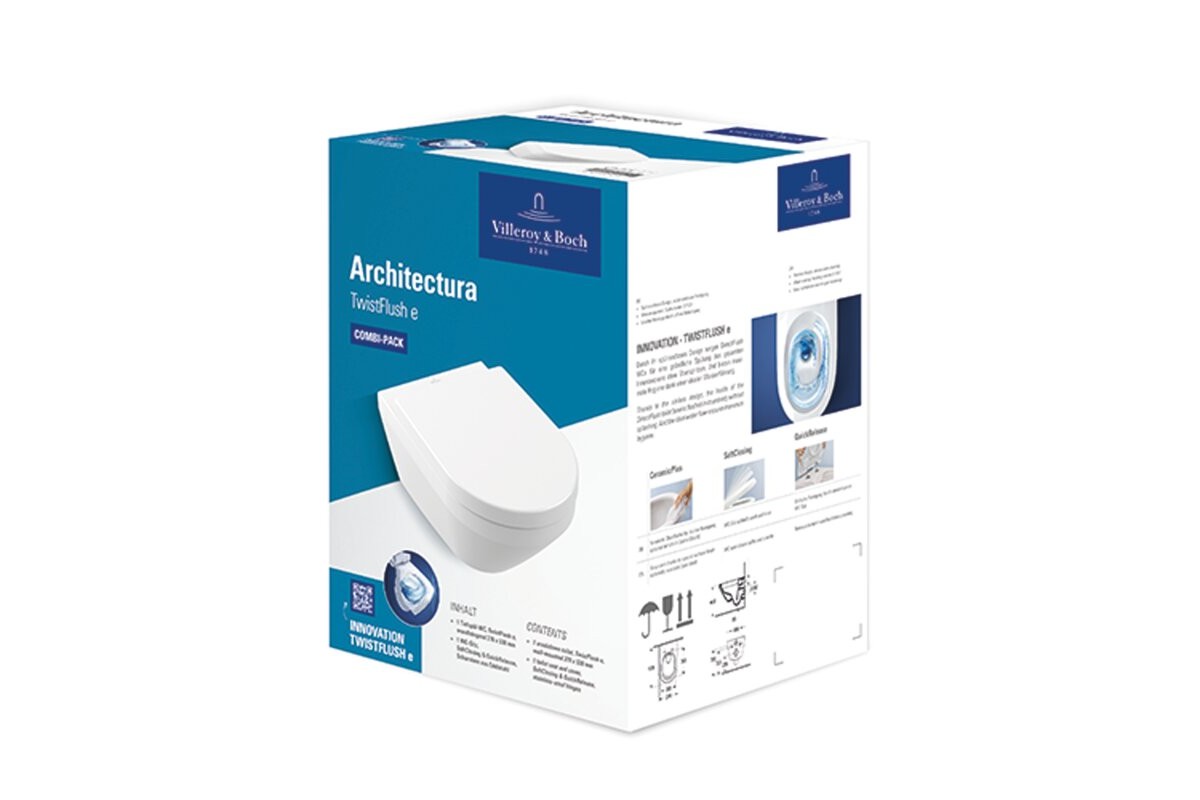 Унитаз подвесной Villeroy & Boch Architectura 37x53 с сиденьем Soft Close, безободковый 4694CL01 с торнадо смывом