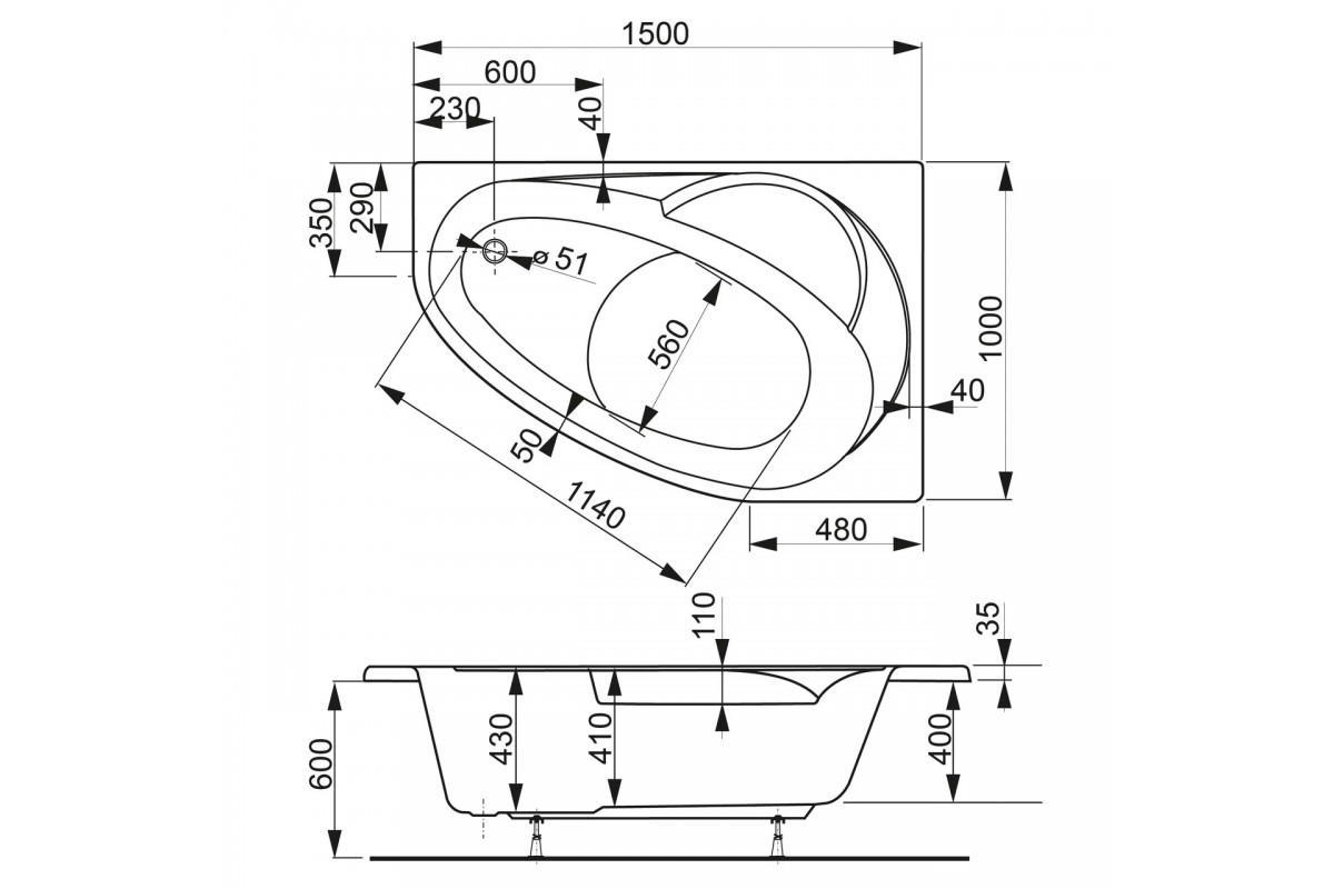 Акриловая ванна VagnerPlast Flora 150x100 L