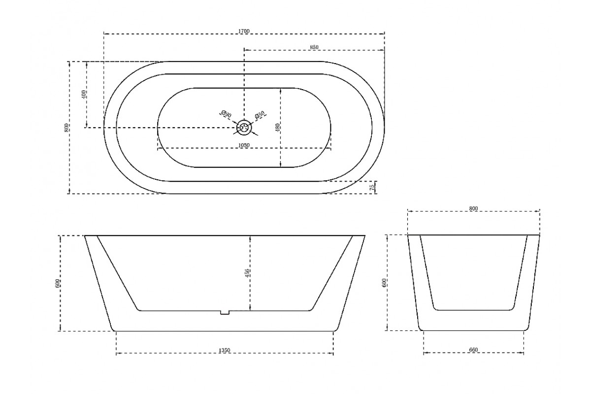 ABBER акриловая ванна слив-перелив стальной каркас 170x80x60 I AB9345-1.7