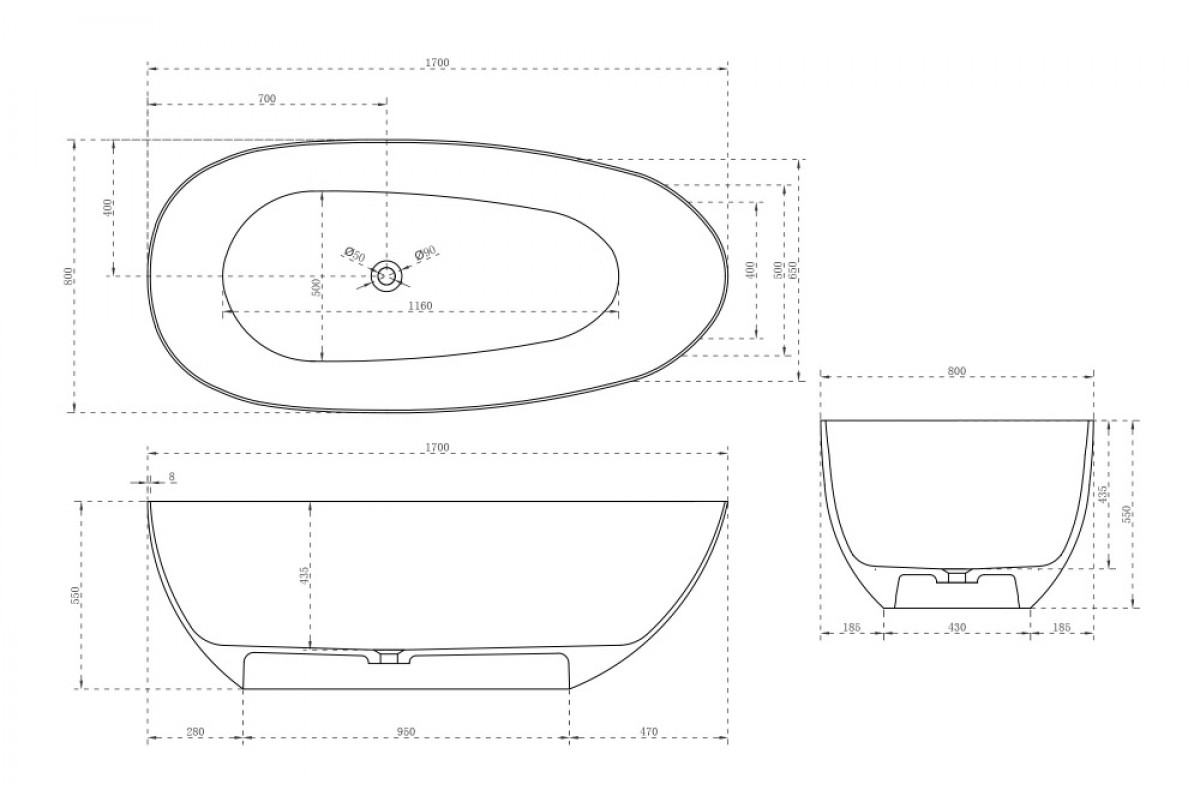 ABBER KARBON отдельностоящая ванна из карбона 170x80x55 I AK9011-1.7