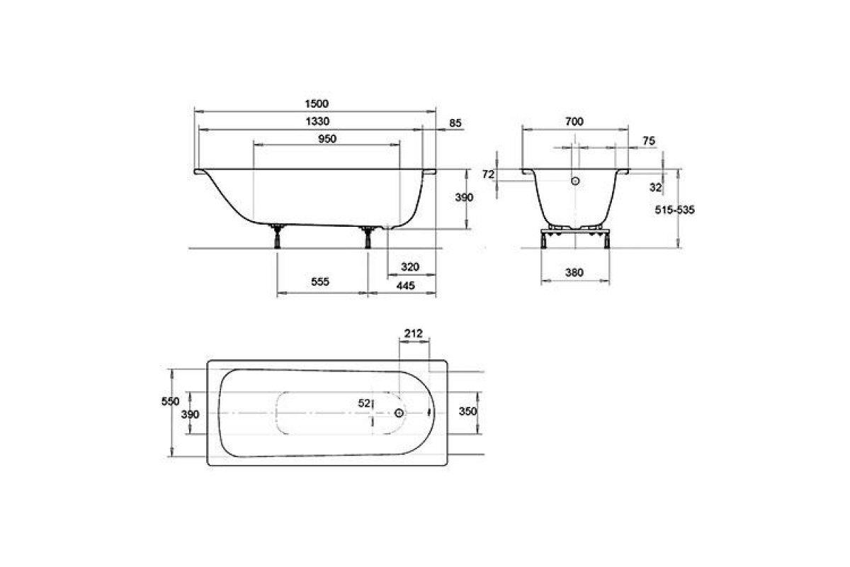 Ванна стальная Kaldewei Saniform Plus 361-1 150x70, 111600010001