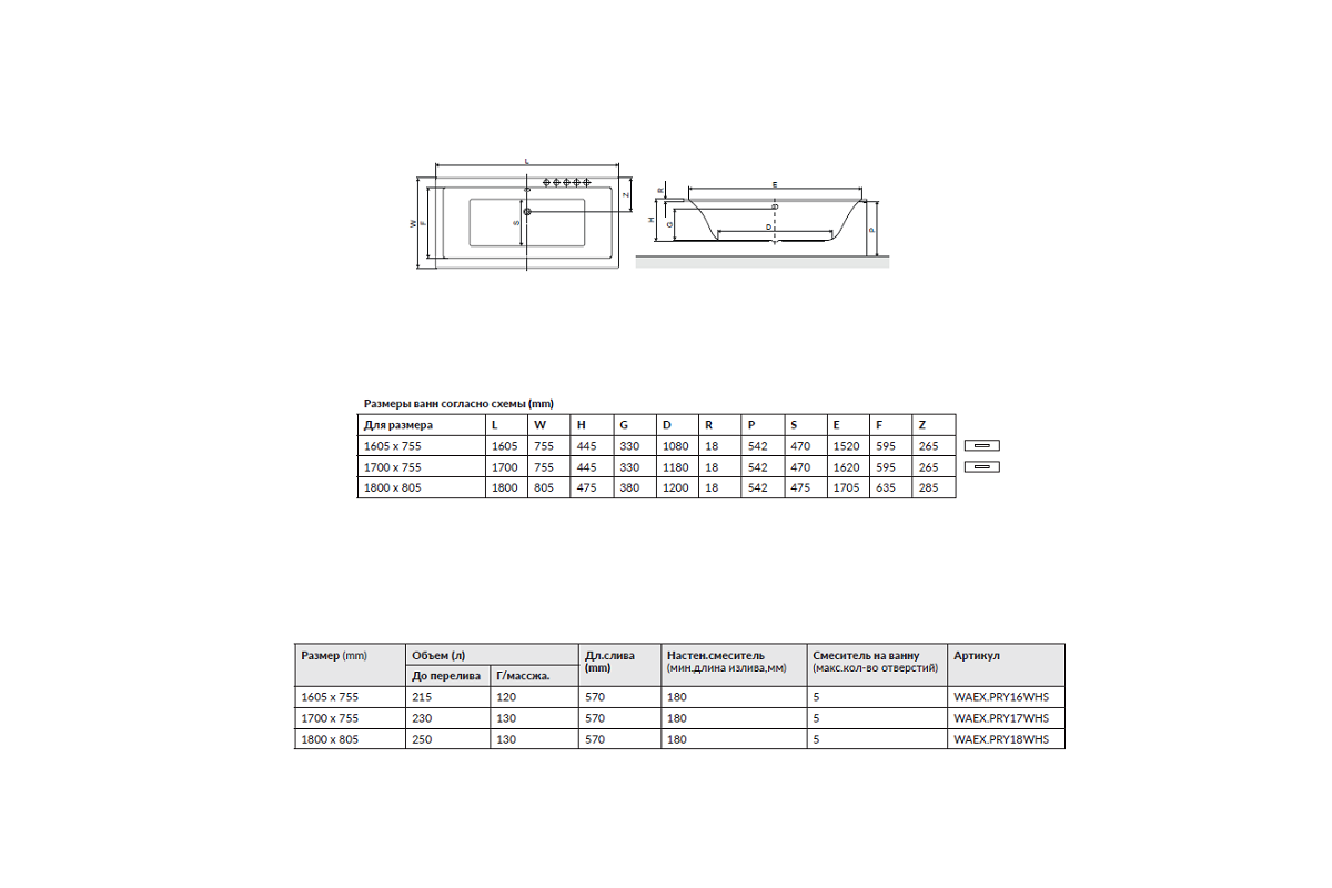 Ванна акриловая Excellent Prizmat 180x80.5 Slim (тонкий борт)