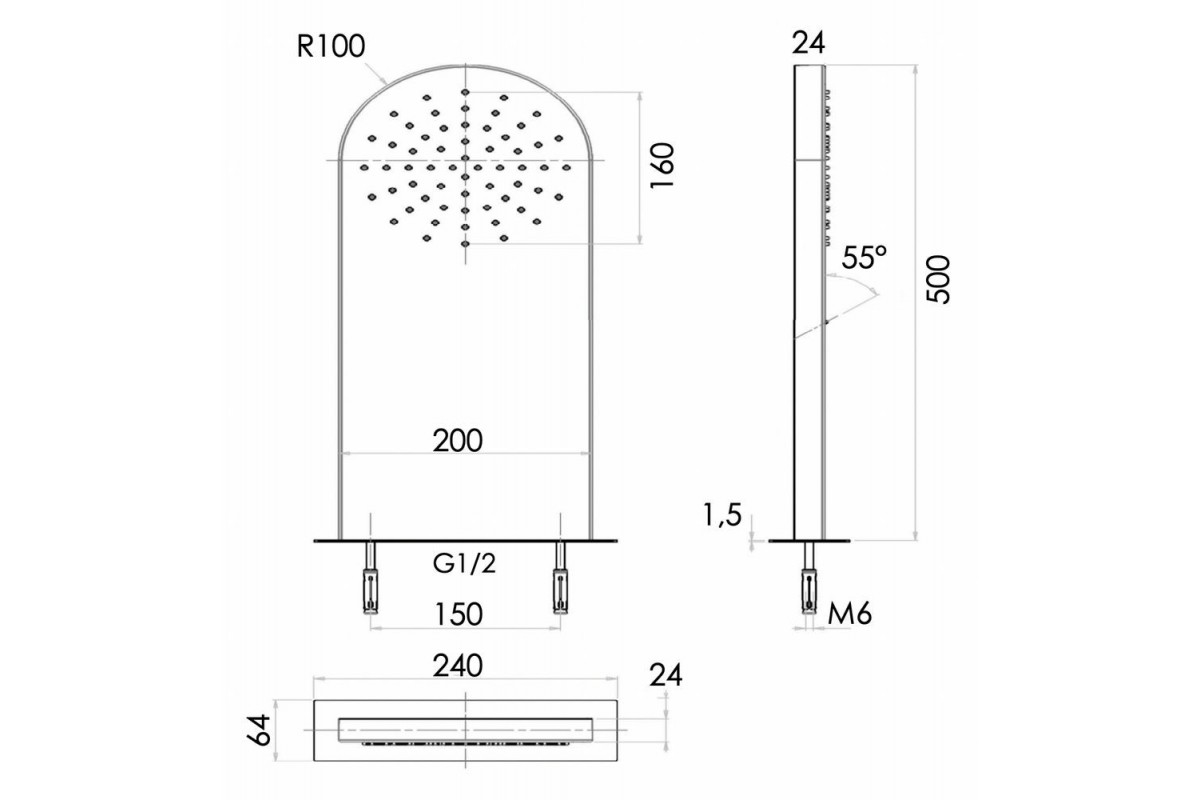 Верхний душ настенный 50x20 см Remer 350MMNOX, черный матовый