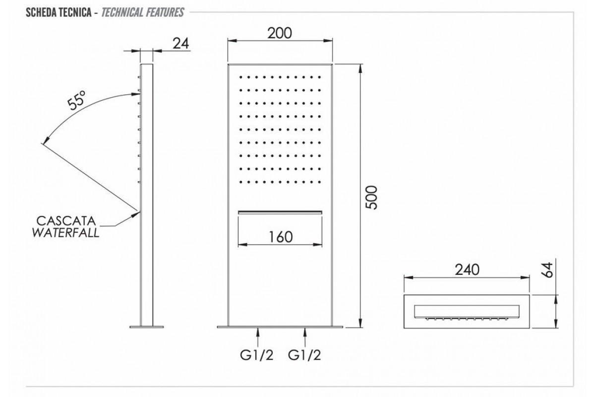 Верхний душ настенный 50x20 см Remer 350SSCAX