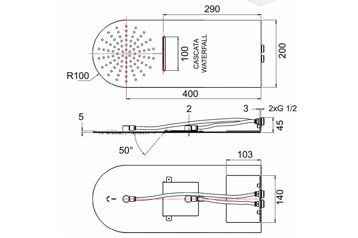 Верхний душ настенный 50x20 см Remer 350UFMCAX