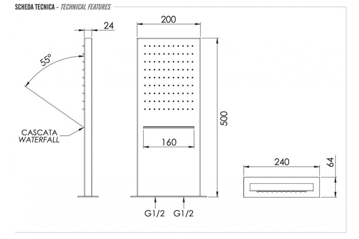 Верхний душ настенный 50x20 см Remer INOX SS350SSCAX