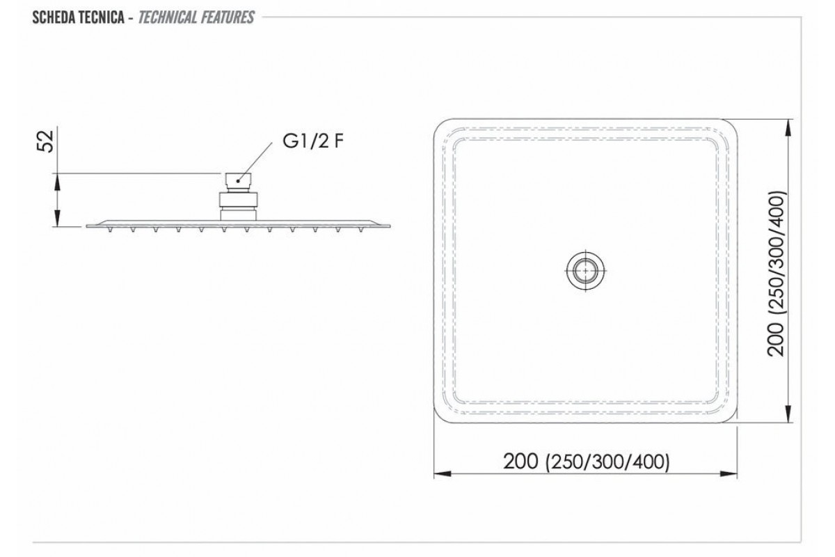 Верхний душ с шарнирным соединением 25 см Remer 357UFD25X