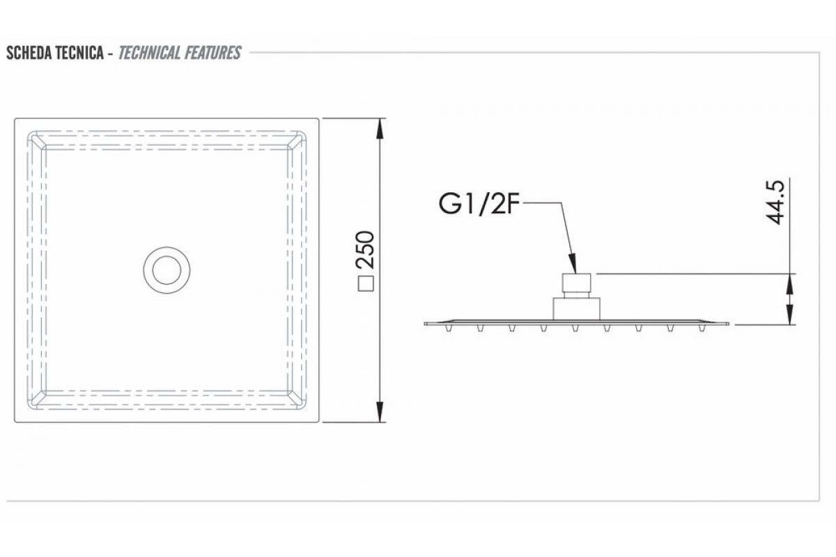 Верхний душ с шарнирным соединением 25 см Remer 357UFS25NOX, черный матовый