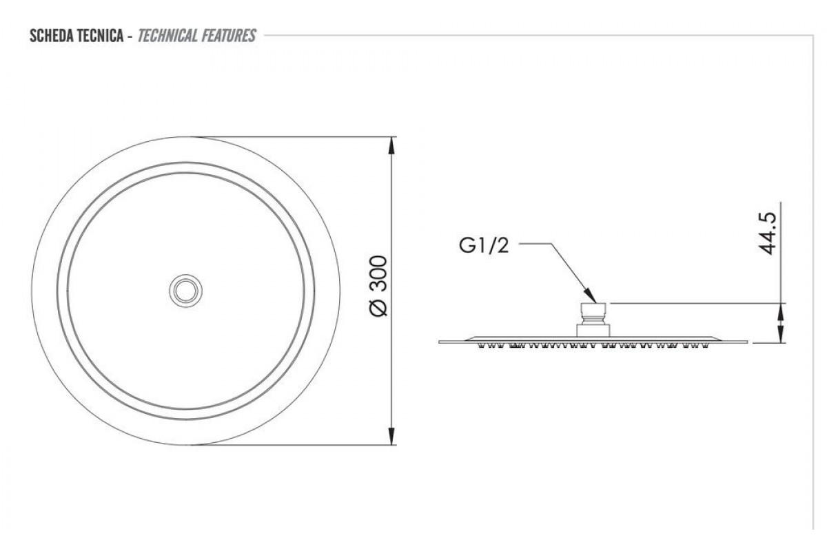 Верхний душ с шарнирным соединением 30 см Remer INOX SS357UFM30X, нержавеющая сталь