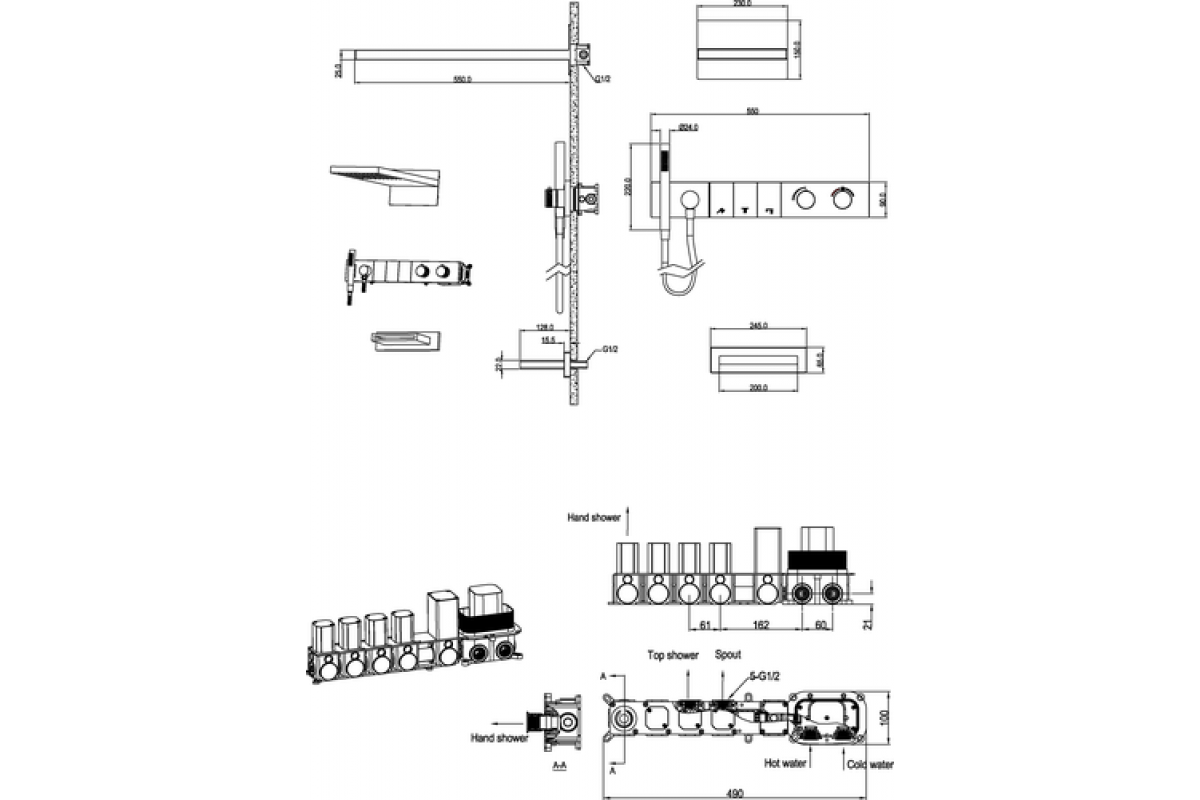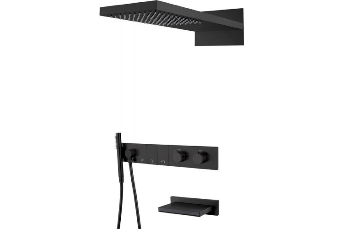 Встроенная душевая система с термостатом и изливом ZODIAC, трехпозиционная Black